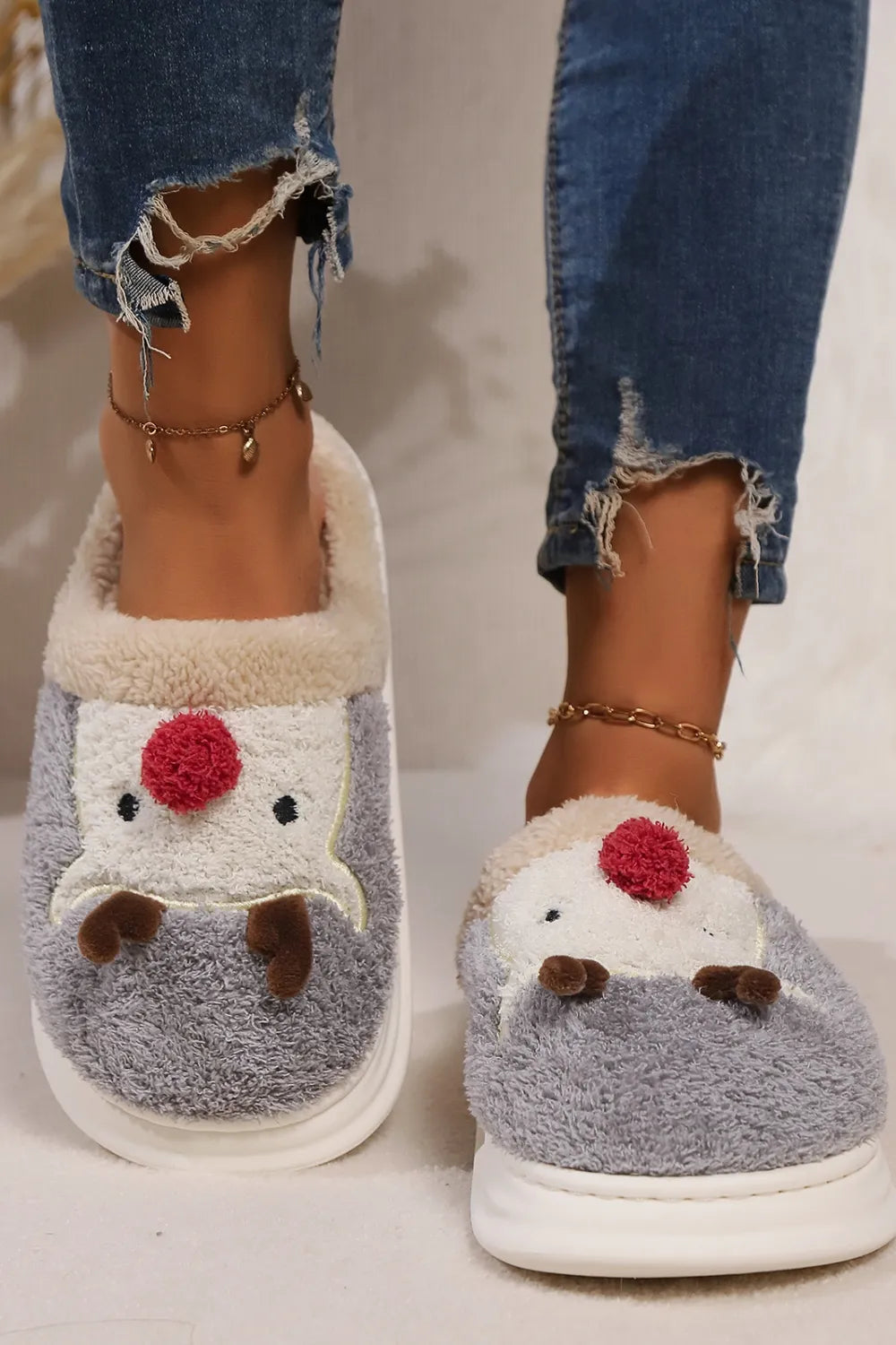 Elk Furry PVC Flat Slippers