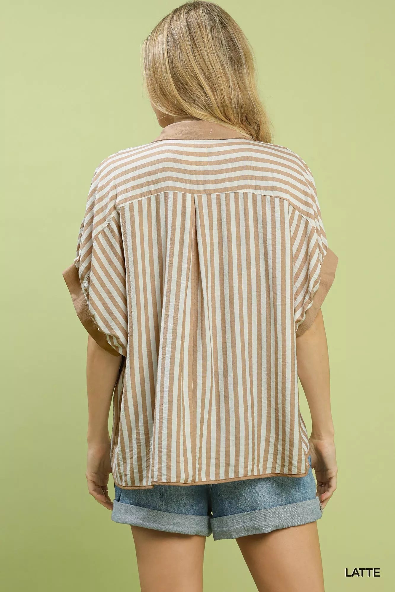 Umgee Stripe Collared Oversized Top – Fashionfinesse